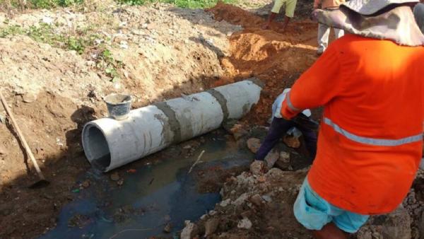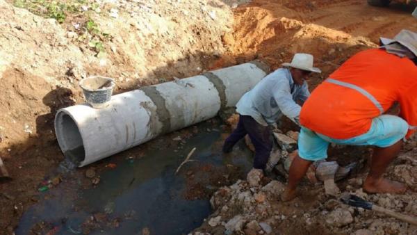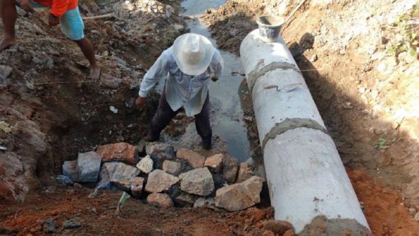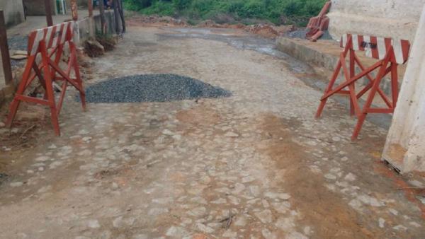 Conserto e ampliação de rede de drenagem e pavimentação em pedra tosca com rejuntamento na Rua Tab. Fco de Paula Lobo Centro esquina Renato Adesivo - 30 manilhas de 50 cm.