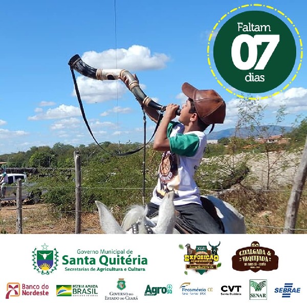 Em uma semana será dado início a XXVIII Exposição Agropecuária de Santa Quitéria e o encerramento tradicional é com a Cavalgada e agora também, Vaquejada do Cozão. Se programe para curtir tudo que está sendo preparado para você! #SantaQuitéria